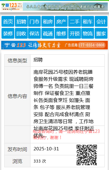 南岸花园25号楼因养老院膳食服务升级需求 现诚聘厨房师傅一名 负责院里一日三餐制作 保证餐食卫生 重点擅长各类面食烹饪 如馒头 面条 包子等 服从养老院管理安排 配合完成食材清点 厨房卫生清洁等日常 ,工作地址南岸花园25号楼 家住附近优先 工作时间 早饭6点40开饭,中午11.00开饭。晚上4.30开饭,工资3000 年龄50至55 非诚勿扰 联系电话15804643112个人15804643112 【电话咨询时,请一定说明在七台河信息网看到的,谢谢!】 |