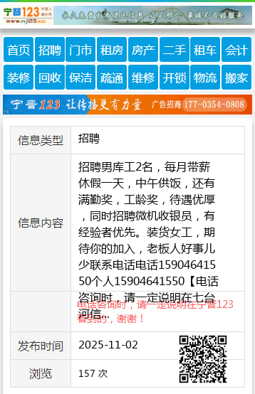 招聘男库工2名,每月带薪休假一天,中午供饭,还有满勤奖,工龄奖,待遇优厚,同时招聘微机收银员,有经验者优先。装货女工,期待你的加入,老板人好事儿少联系电话电话15904641550个人15904641550 【电话咨询时,请一定说明在七台河信息网看到的,谢谢!】 |