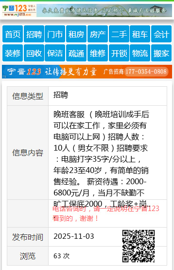 晚班客服 (晚班培训成手后可以在家工作,家里必须有电脑可以上网)招聘人数:10人(男女不限)招聘要求:电脑打字35字/分以上,年龄23至40岁,有简单的销售经验。 薪资待遇:2000-6800元/月,当月不缺勤不旷工保底2000,工龄奖+岗位津贴+绩效+奖金。联系电话/信:151456930880个人15145693088 【电话咨询时,请一定说明在七台河信息网看到的,谢谢!】 |