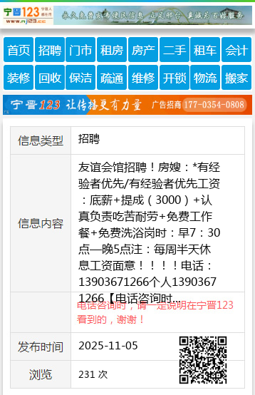 友谊会馆招聘!房嫂:*有经验者优先/有经验者优先工资:底薪+提成(3000)+认真负责吃苦耐劳+免费工作餐+免费洗浴岗时:早7:30点—晚5点注:每周半天休息工资面意!!!!电话:13903671266个人13903671266 【电话咨询时,请一定说明在七台河信息网看到的,谢谢!】 |