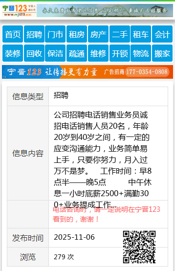 公司招聘电话销售业务员诚招电话销售人员20名,年龄20岁到40岁之间,有一定的应变沟通能力,业务简单易上手,只要你努力,月入过万不是梦。 工作时间:早8点半——晚5点 中午休息一小时底薪2500+满勤300+业务提成工作地点:桃山区联系电话:13314643456个人13314643456 【电话咨询时,请一定说明在七台河信息网看到的,谢谢!】 |