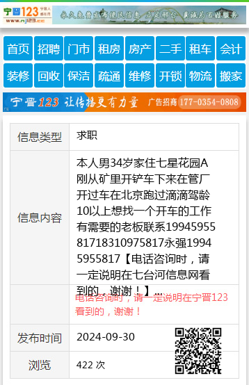 本人男34岁家住七星花园A刚从矿里开铲车下来在管厂开过车在北京跑过滴滴驾龄10以上想找一个开车的工作有需要的老板联系1994595581718310975817永强19945955817 【电话咨询时,请一定说明在七台河信息网看到的,谢谢!】 |