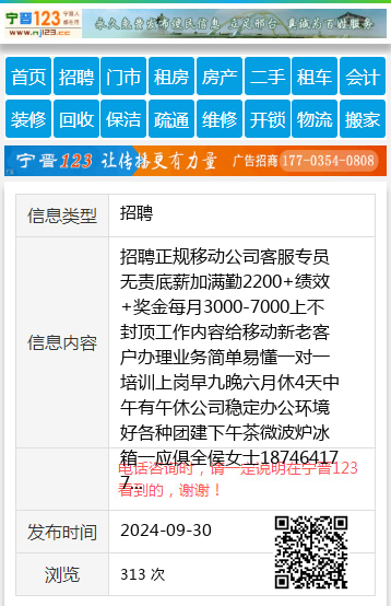 招聘正规移动公司客服专员无责底薪加满勤2200+绩效+奖金每月3000-7000上不封顶工作内容给移动新老客户办理业务简单易懂一对一培训上岗早九晚六月休4天中午有午休公司稳定办公环境好各种团建下午茶微波炉冰箱一应俱全侯女士18746417796 【电话咨询时,请一定说明在七台河信息网看到的,谢谢!】 |