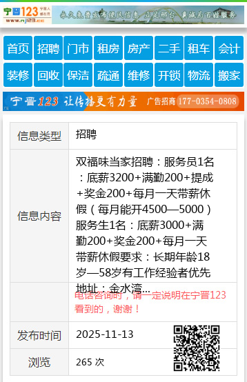 双福味当家招聘:服务员1名:底薪3200+满勤200+提成+奖金200+每月一天带薪休假(每月能开4500—5000)服务生1名:底薪3000+满勤200+奖金200+每月一天带薪休假要求:长期年龄18岁—58岁有工作经验者优先地址:金水湾家园交通指挥中心劳动局道口里走200米工作时间早8:00~晚8:30有意者联系17845788822 14745675681个人17845788822 【电话咨询时,请一定说明在七台河信息网看到的,谢谢!】 |