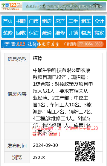中瑯生物科技有限公司衣康酸项目现已投产,现招聘:1综合部:对接政策及项目申报人员1人,要求有相关从业经验。2生产部:中控主管1名,车间工人10名。3能源部:电工2名、锅炉工2名。4工程部:维修工4人。5物流部:物流经理1人、库管1名(要求会开叉车),叉车工1名。6门卫保安3人7生物化验方向的化验员1人(大专学历以上)。薪资待遇:工资面议、五险、三餐免费、上下班有通勤车。有意者电联:13359796578于13359796578 【电话咨询时,请一定说明在七台河信息网看到的,谢谢!】 |