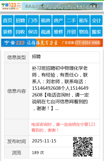 补习班招聘初中物理化学老师,有经验,有责任心,联系人:刘老师,联系电话:15146492608个人15146492608 【电话咨询时,请一定说明在七台河信息网看到的,谢谢!】 |