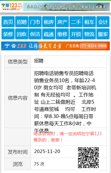 招聘电话销售专员招聘电话销售业务员10名,年龄22-40岁 男女均可 老带新培训机制 有无经验均可 。工作地址 山上二转盘附近 北岸5号道商贸城 均可 工作时间:早8.30-晚5点每周日带薪休息每天工作8小时,中午休息一小时。底薪2600+满勤200➕提成 综合工资8000➕ , 努力就有回报 给一个证明自己的机会 。地址:七台河桃山区多伦多对面联系人:崔先生电话:18904645551联系方式个人18904645551 【电话咨询时,请一定说明在七台河信息网看到的,谢谢!】 |