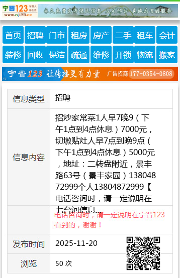 招炒家常菜1人早7晚9(下午1点到4点休息)7000元,切墩贴灶人早7点到晚9点(下午1点到4点休息)5000元,地址:二转盘附近,景丰路63号(景丰家园)13804872999个人13804872999 【电话咨询时,请一定说明在七台河信息网看到的,谢谢!】 |