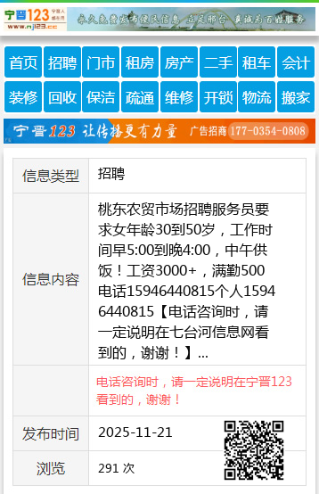桃东农贸市场招聘服务员要求女年龄30到50岁,工作时间早5:00到晚4:00,中午供饭!工资3000+,满勤500 电话15946440815个人15946440815 【电话咨询时,请一定说明在七台河信息网看到的,谢谢!】 |