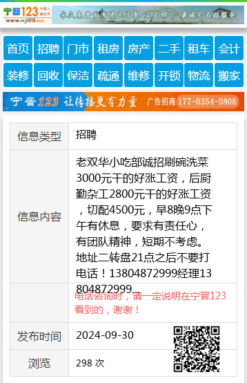 老双华小吃部诚招刷碗洗菜3000元干的好涨工资,后厨勤杂工2800元干的好涨工资,切配4500元,早8晚9点下午有休息,要求有责任心,有团队精神,短期不考虑。地址二转盘21点之后不要打电话!13804872999经理13804872999 【电话咨询时,请一定说明在七台河信息网看到的,谢谢!】 |
