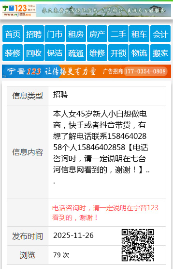 本人女45岁新人小白想做电商,快手或者抖音带货,有想了解电话联系15846402858个人15846402858