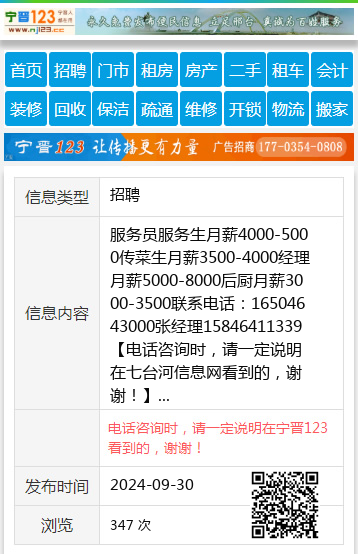 服务员服务生月薪4000-5000传菜生月薪3500-4000经理月薪5000-8000后厨月薪3000-3500联系电话:16504643000张经理15846411339 【电话咨询时,请一定说明在七台河信息网看到的,谢谢!】 |