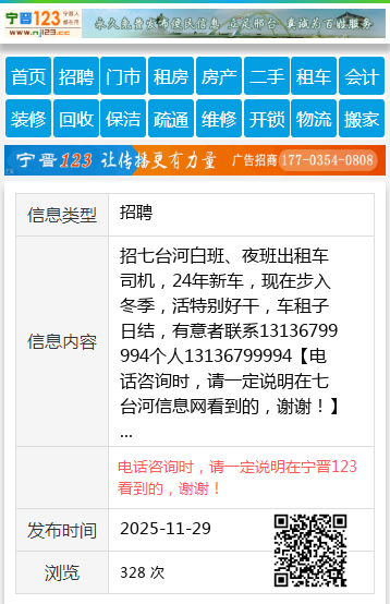 招七台河白班、夜班出租车司机,24年新车,现在步入冬季,活特别好干,车租子日结,有意者联系13136799994个人13136799994 【电话咨询时,请一定说明在七台河信息网看到的,谢谢!】 |