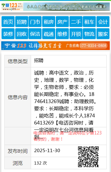 诚聘:高中语文,政治,历史,地理,数学,物理,化学,生物老师,要求:必须能长期稳定,有事业心。18746413269诚聘:助理教师。要求:长期稳定,本科学历,能吃苦,能成长个人18746413269 【电话咨询时,请一定说明在七台河信息网看到的,谢谢!】 |