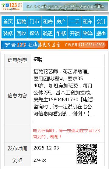 | 防骗提醒: | 七台河信息网(www.qitaihe.cc)提醒您:手工活、网络兼职、刷单,都是骗子!凡以各种名义收取费用的都是骗子!找工作是往兜里挣钱,让你往外掏钱的都是骗子!异地招聘请提高警惕,谨防诈骗! |