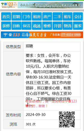 要求:女性,会开车,办公软件熟练。每周单休,车补10元/日。入职次月缴纳社保,每月10日准时发放工资。早8:00-16:30.法定假日一天休且三倍工资。因工作内容琐碎,所以要求心细,有责任心且不娇气。综合工资3000+,工资根据能力定且有上涨空间。可将简历发至邮箱444212137@qq.com后再面议。企业名称:七台河市沈发新能源有限公司,为我市招商引资企业,且主营我市餐厨垃圾回收处理项目因本人工作忙碌,请不要打电话或加微信。直接将简历发送至邮箱即可。简历可看出人的基本能力。请详细介绍王15804648395 【电话咨询时,请一定说明在七台河信息网看到的,谢谢!】 |