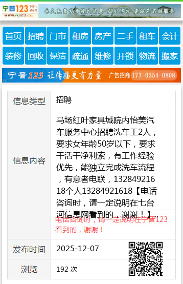 马场红叶家具城院内怡美汽车服务中心招聘洗车工2人,要求女年龄50岁以下,要求干活干净利索,有工作经验优先,能独立完成洗车流程,有意者电联,13284921618个人13284921618 【电话咨询时,请一定说明在七台河信息网看到的,谢谢!】 |
