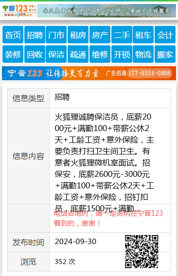 火狐狸诚聘保洁员,底薪2000元+满勤100+带薪公休2天+工龄工资+意外保险,主要负责打扫卫生间卫生。有意者火狐狸微机室面试。招保安,底薪2600元-3000元+满勤100+带薪公休2天+工龄工资+意外保险,招钉扣员,底薪1500元+满勤100元+计件工资+带薪公休2天+工龄工资+意外保险。有意者火狐狸微机室面试赵女士18004641455 【电话咨询时,请一定说明在七台河信息网看到的,谢谢!】 |