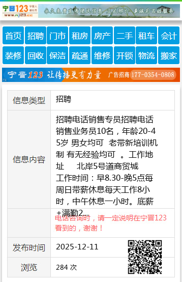 招聘电话销售专员招聘电话销售业务员10名,年龄20-45岁 男女均可 老带新培训机制 有无经验均可 。工作地址 北岸5号道商贸城 工作时间:早8.30-晚5点每周日带薪休息每天工作8小时,中午休息一小时。底薪+满勤2800 普通员工综合工资7000 精英员工8-12000 ,不要想着拿底薪 公司没有拿底薪的员工 公司员工70? 目前精英单王 工资15000 薪资真实无水分 只要你努力,必须有回报。地址:七台河桃山区多伦多联系人:崔先生联系方式:18904645551个人18904645551 【电话咨询时,请一定说明在七台河信息网看到的,谢谢!】 |