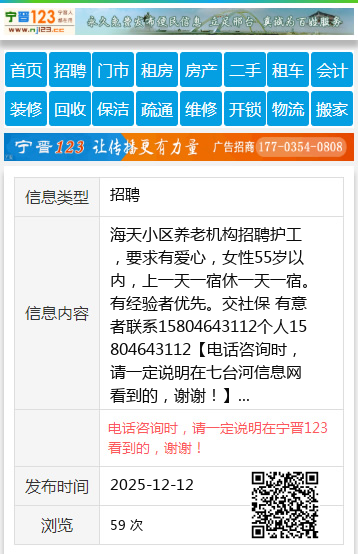 | 防骗提醒: | 七台河信息网(www.qitaihe.cc)提醒您:手工活、网络兼职、刷单,都是骗子!凡以各种名义收取费用的都是骗子!找工作是往兜里挣钱,让你往外掏钱的都是骗子!异地招聘请提高警惕,谨防诈骗! |