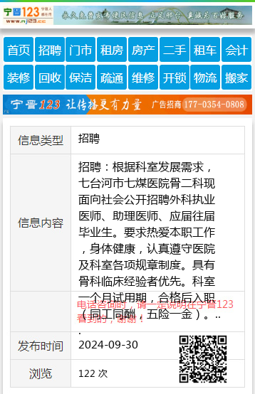 招聘:根据科室发展需求,七台河市七煤医院骨二科现面向社会公开招聘外科执业医师、助理医师、应届往届毕业生。要求热爱本职工作,身体健康,认真遵守医院及科室各项规章制度。具有骨科临床经验者优先。科室一个月试用期,合格后入职(同工同酬,五险一金)。联系人:侯洪涛,联系电话:13946565110。候大夫13946565110 【电话咨询时,请一定说明在七台河信息网看到的,谢谢!】 |