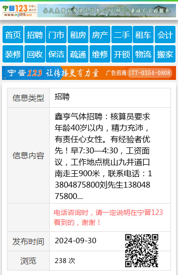 鑫亨气体招聘:核算员要求年龄40岁以内,精力充沛,有责任心女性。有经验者优先!早7:30—4:30,工资面议,工作地点桃山九井道口南走王900米,联系电话:13804875800刘先生13804875800 【电话咨询时,请一定说明在七台河信息网看到的,谢谢!】 |