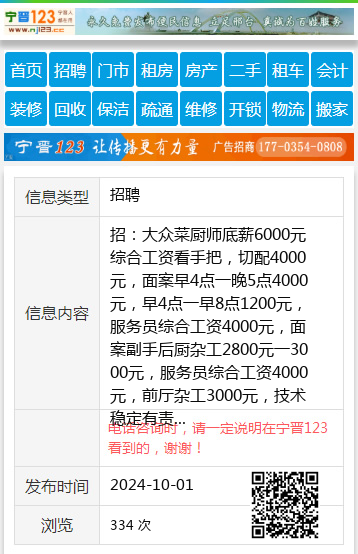 招:大众菜厨师底薪6000元综合工资看手把,切配4000元,面案早4点一晚5点4000元,早4点一早8点1200元,服务员综合工资4000元,面案副手后厨杂工2800元一3000元,服务员综合工资4000元,前厅杂工3000元,技术稳定有责任心,短期不考虑。二转盘附近经理13804872999 【电话咨询时,请一定说明在七台河信息网看到的,谢谢!】 |