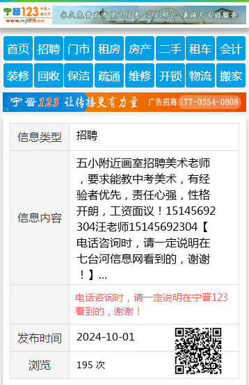 五小附近画室招聘美术老师,要求能教中考美术,有经验者优先,责任心强,性格开朗,工资面议!15145692304汪老师15145692304 【电话咨询时,请一定说明在七台河信息网看到的,谢谢!】 |