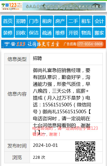 御尚礼宴急招销售经理,要有团队意识,勤奋好学,沟通能力强,形象气质佳,早八晚四,三天公休,底薪+提成(月入过万不是梦)电话:15561515005(微信同号)御尚礼15561515005 【电话咨询时,请一定说明在七台河信息网看到的,谢谢!】 |