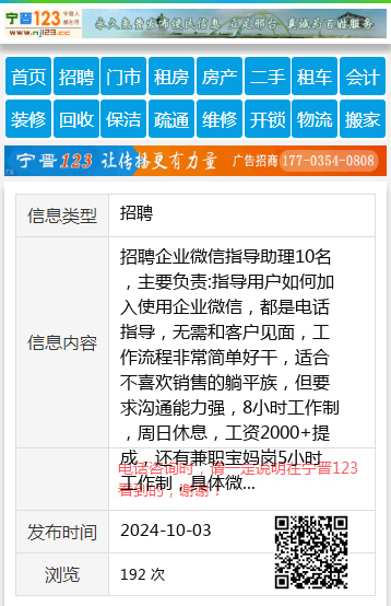 招聘企业微信指导助理10名,主要负责:指导用户如何加入使用企业微信,都是电话指导,无需和客户见面,工作流程非常简单好干,适合不喜欢销售的躺平族,但要求沟通能力强,8小时工作制,周日休息,工资2000+提成,还有兼职宝妈岗5小时工作制,具体微信详聊,地址,桃山区步行街潘可鑫18724640218 【电话咨询时,请一定说明在七台河信息网看到的,谢谢!】 |