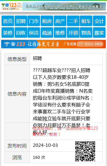 | 防骗提醒: | 七台河信息网(www.qitaihe.cc)提醒您:手工活、网络兼职、刷单,都是骗子!凡以各种名义收取费用的都是骗子!找工作是往兜里挣钱,让你往外掏钱的都是骗子!异地招聘请提高警惕,谨防诈骗! |
