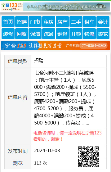 七台河辣不二地道川菜诚聘:前厅主管(1人),底薪5000+满勤200+提成(5500-5700);前厅领班(1人),底薪4200+满勤200+提成(4700-5200);服务员,底薪4000+满勤200+提成(4500-5000);传菜员,3700+满勤200+提成(4200-4700);收银员,底薪3800+满勤200+提成(4300-4500);杀鱼工,3000+满勤200。以上岗位成手优先、不限男女,年龄23-55岁。员工待遇,供吃供住,每月满勤带薪休息2天,工龄每6个月涨50元,合理晋升机制。地址:桃山区文华路92号(七号公馆售楼处南侧)电话:19845570003、15846195888杜先生19845570003 【电话咨询时,请一定说明在七台河信息网看到的,谢谢!】 |