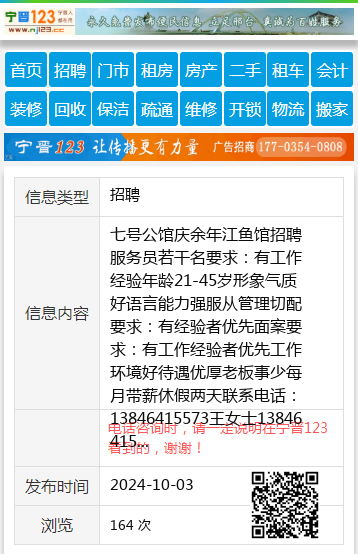 七号公馆庆余年江鱼馆招聘服务员若干名要求:有工作经验年龄21-45岁形象气质好语言能力强服从管理切配要求:有经验者优先面案要求:有工作经验者优先工作环境好待遇优厚老板事少每月带薪休假两天联系电话:13846415573王女士13846415573 【电话咨询时,请一定说明在七台河信息网看到的,谢谢!】 |