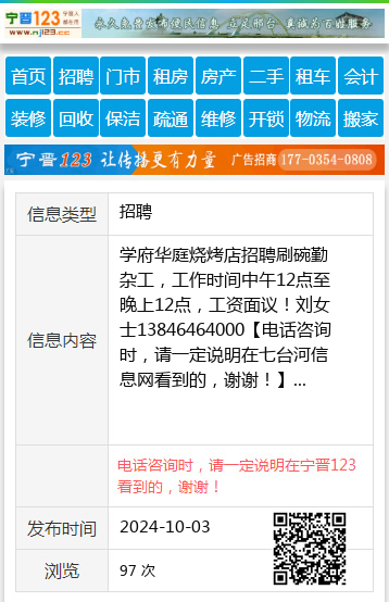 【电话咨询时,请一定说明在七台河信息网看到的,谢谢!】