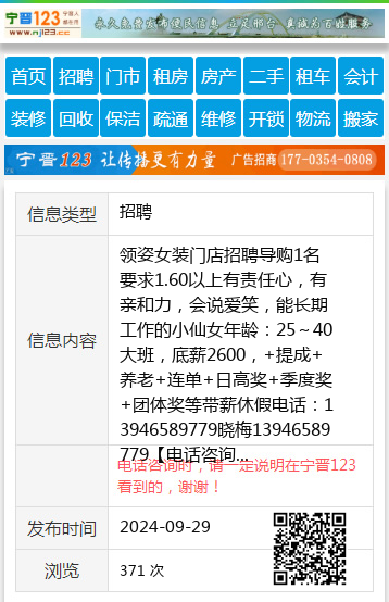 领姿女装门店招聘导购1名要求1.60以上有责任心,有亲和力,会说爱笑,能长期工作的小仙女年龄:25~40大班,底薪2600,+提成+养老+连单+日高奖+季度奖+团体奖等带薪休假电话:13946589779晓梅13946589779 【电话咨询时,请一定说明在七台河信息网看到的,谢谢!】 |