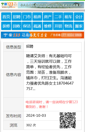 聘请艾灸师:有无基础均可,三天培训就可以做,工作简单,有经验者优先,工作范围:沏茶,准备泡脚水,铺床巾,打扫卫生。沟通能力强者优先陈女士18704647757 【电话咨询时,请一定说明在七台河信息网看到的,谢谢!】 |
