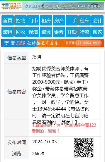 招聘优秀美容师美体师,有工作经验者优先,工资底薪2000-5000元+提成+手工+奖金+带薪休息带薪招收美容美体学员,学会留点工作,一对一教学,学的快。女士13946564444 【电话咨询时,请一定说明在七台河信息网看到的,谢谢!】 |