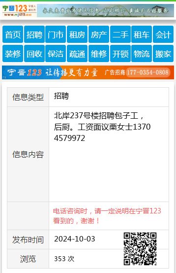 北岸237号楼招聘包子工,后厨。工资面议栗女士13704579972