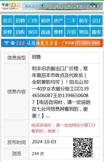 利丰旧衣服出口厂价格,常年直招本市收点及代收员(全职兼职均可)!招北山30一40岁女衣服分栋工☎️13946506087王总13946506087 【电话咨询时,请一定说明在七台河信息网看到的,谢谢!】 |