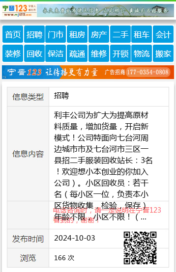 利丰公司为扩大为提高原材料质量,增加货量,开启新模式!公司特面向七台河周边城市市及七台河市三区一县招二手服装回收站长:3名!欢迎想小本创业的你加入公司)。小区回收员:若干名(每小区一位,负责本小区货物收集,检验,保存)年龄不限,小区不限!(时间自由,收入自由,全职兼职均可,适合宝妈,有想创业的大学生)时间自由,当日变现!联系电话:13946506087(王总)13945599685张总王总13946506087 【电话咨询时,请一定说明在七台河信息网看到的,谢谢!】 |