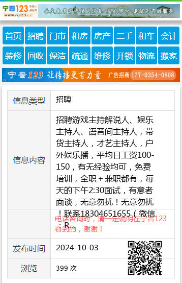 招聘游戏主持解说人、娱乐主持人、语音间主持人,带货主持人,才艺主持人,户外娱乐播,平均日工资100-150,有无经验均可,免费培训,全职+兼职都有,每天的下午2:30面试,有意者面谈,无意勿扰!无意勿扰!联系18304651655(微信:RYST94188)16818304651655 【电话咨询时,请一定说明在七台河信息网看到的,谢谢!】 |