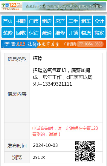 招聘送氧气司机,底薪加提成,常年工作,c证就可以周先生13349321111