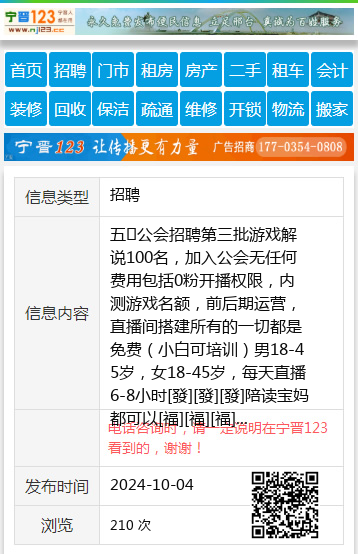 五⭐公会招聘第三批游戏解说100名,加入公会无任何费用包括0粉开播权限,内测游戏名额,前后期运营,直播间搭建所有的一切都是免费(小白可培训)男18-45岁,女18-45岁,每天直播6-8小时[發][發][發]陪读宝妈都可以[福][福][福][福](主要内容游戏解说)专人1V1培训指导[庆祝][庆祝]1.工作时间自由(可以自己选播时间)2.内容简单(类似游戏解说)3.可以在家直播(电脑手机均可)4.要求:男女不限5.起码的坚持都做不到的请绕行做不好养家糊口,做好了年入百万。[玫瑰]诚招线上主播,田15845495322 【电话咨询时,请一定说明在七台河信息网看到的,谢谢!】 |