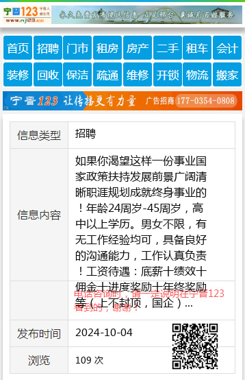 如果你渴望这样一份事业国家政策扶持发展前景广阔清晰职涯规划成就终身事业的!年龄24周岁-45周岁,高中以上学历。男女不限,有无工作经验均可,具备良好的沟通能力,工作认真负责!工资待遇:底薪十绩效十佣金十进度奖励十年终奖励等(上不封顶,国企)工作时间早8:00—上午10:30要求形象好气质佳,工作认真负责,咨询电话.微信同步;13945589688合适您就来!我们为您提供宝贵的发展空间!月薪过万元不是梦!非诚勿扰!付13945589688 【电话咨询时,请一定说明在七台河信息网看到的,谢谢!】 |
