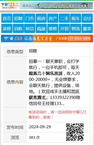 招募一:聊天兼职,会打字就行,一台手机即可,每天收入几十到几百。