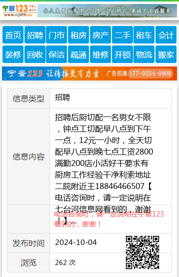 招聘后厨切配一名男女不限,钟点工切配早八点到下午一点,12元一小时,全天切配早八点到晚七点工资2800满勤200店小活好干要求有厨房工作经验干净利索地址二院附近王18846466507 【电话咨询时,请一定说明在七台河信息网看到的,谢谢!】 |