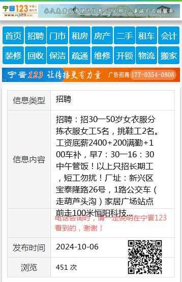 招聘:招30一50岁女衣服分拣衣服女工5名,挑鞋工2名。工资底薪2400+200满勤+100车补,早7:30一16:30中午管饭!以上只招长期工,短工勿扰!厂址:新兴区宝泰隆路26号,1路公交车(走葫芦头沟)家居广场站点前走100米恒阳科技公司红大门院内。☎️13946506087王总13946506087 【电话咨询时,请一定说明在七台河信息网看到的,谢谢!】 |