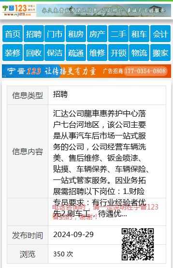汇达公司龍車惠养护中心落户七台河地区,该公司主要是从事汽车后市场一站式服务的公司,公司经营车辆洗美、售后维修、钣金喷漆、贴摸、车辆保养、车辆保险、一站式管家服务。因业务拓展需招聘以下岗位:1.财险专员要求:有行业经验者优先2.刷车工,待遇优厚3.客户车险专员4.客服以上岗位有行业经验者优先待遇优厚底薪+绩效+带薪休假+午餐+社保有意者面谈候总19586392666 【电话咨询时,请一定说明在七台河信息网看到的,谢谢!】 |