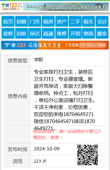 专业家政打扫卫生,装修后卫生打扫,专业擦玻璃。新居开荒保洁,家居大扫除整理收纳。钟点工,包月打扫,单位办公室店铺打扫卫生。干活干净利索,价格优惠,欢迎您的来电18704649271微信18704645471保洁18704649271 【电话咨询时,请一定说明在七台河信息网看到的,谢谢!】 |