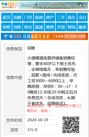 小酒喔酒类直供储备销售经理,要求40岁以下男士优先,会骑电瓶车,有销售经验,底薪+提成+完成奖励,月工资3000—6000以上,早晚班倒,早班8:30—17:30晚班11:30至20:30转正后月休息四天!非成勿扰,长期干者优先,应聘电话13384644335郭经理13384644335 【电话咨询时,请一定说明在七台河信息网看到的,谢谢!】 |